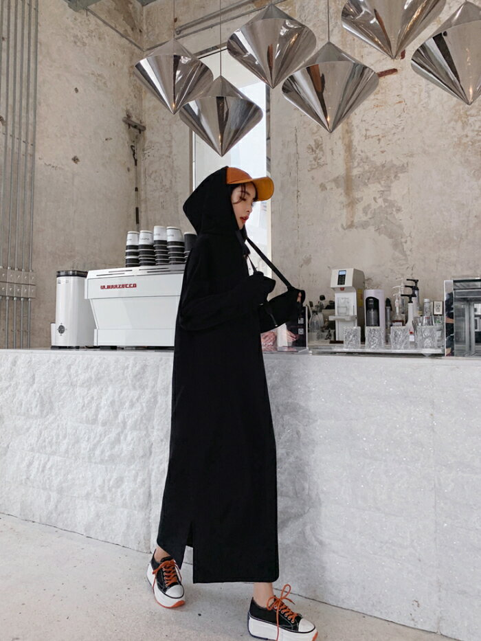 【送料無料】ニットワンピース レディース ロングワンピース 長袖 セーター ニットセーター 秋冬 スウェット ロング丈 パーカー ゆったり 無地 体型カバー あったかい 防寒 シンプル カジュアル