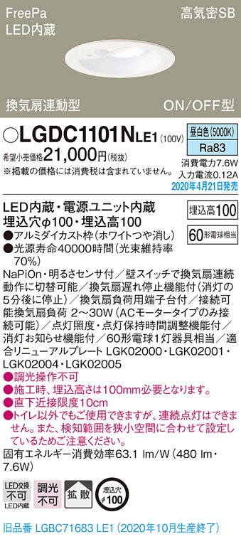 カテゴリ:照明器具 住宅照明 トイレ灯 ダウンライト メーカー:Panasonic パナソニック 型番:lgdc1101nle1 旧型番:LGBC71683LE1 ◎照明関連 【おすすめ Fケーブル】 (※適合に関しては事前にご確認ください) VVF1.6x2C VVF2.0x2C VVF1.6x3C VVF2.0x3C