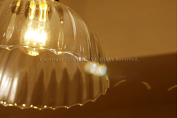 お椀を逆さにしたような半円形のガラスペンダントライト”鉄仙”。