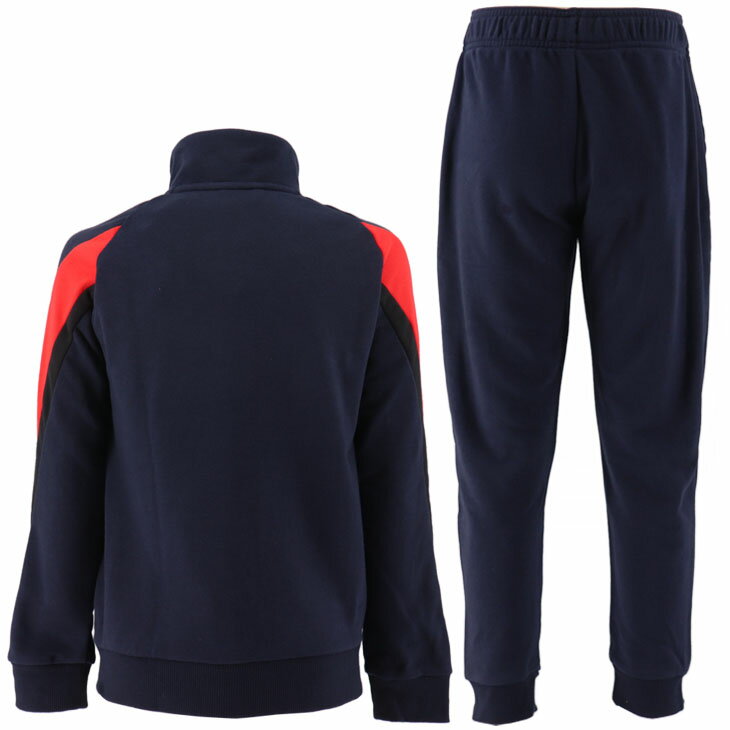 袖の太いラインとフロントのBIGロゴが特長的なジャケットと ワンポイントロゴのシンプルなパンツのセット。
